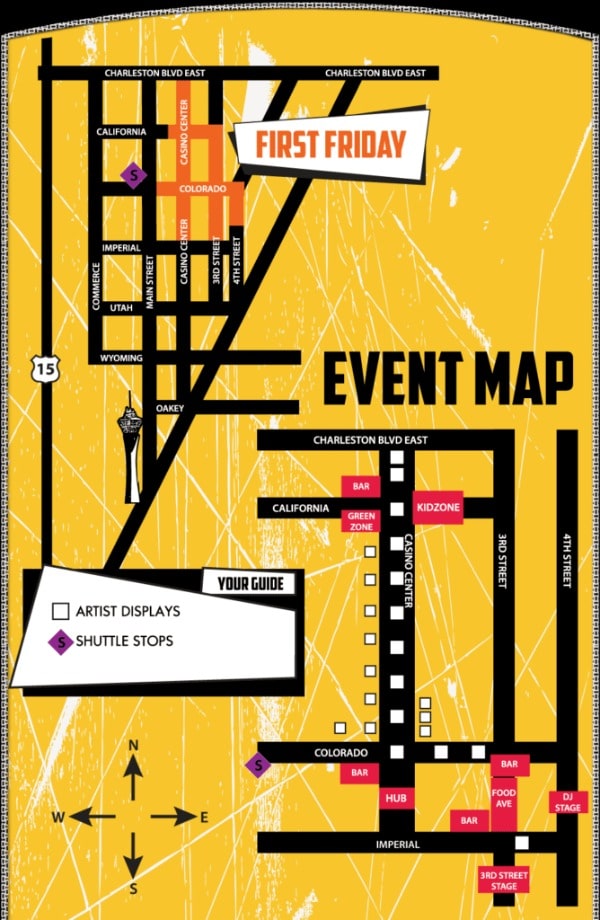 First Friday Las Vegas Map – First Friday is back and ready to kick off 2024 in Downtown Las Vegas. Organizers said the event will be held on Jan. 5 and is a place where families can support local artists and find their own . A German company is offering a car rental service in downtown Las Vegas where the car is driven to the customer using remove driving technology. .