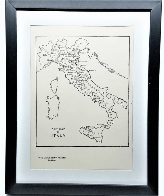 MAP of ANCIENT ITALY Vintage Framed Black & White 5×7 Art Print
